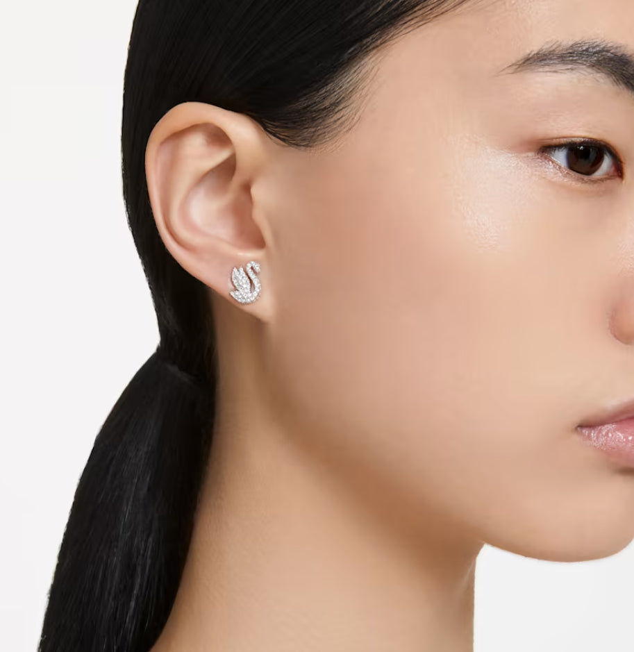 Swarovski 5647873 Orecchini a lobo Iconic Swan Cigno Bianchi Placcato Rodio
