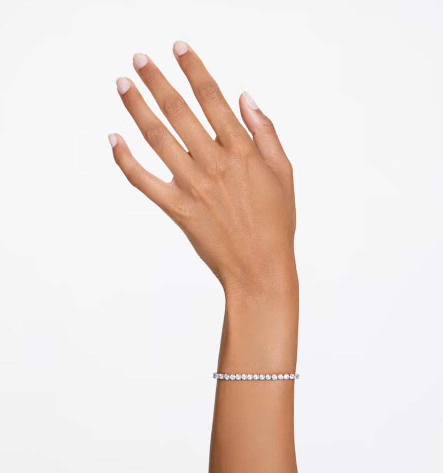 Swarovski 5648937 Braccialetto Matrix Tennis Taglio tondo Bianco Placcato Rodio Taglia M