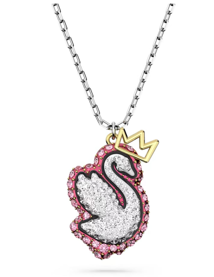 Esalta il tuo lato artistico con questo pendente Pop Swan, che conferisce un tocco di arte dei graffiti all'iconico Cigno Swarovski. Disposto su una catena placcata rodio, il pendente e decorato da cristalli Cry e rosa all-over applicati con la nostra tecnica Pointiage®, e presenta una corona placcata rodio all'estremita superiore. Indossa questo gioiello per aggiungere un tocco di colore al tuo stile e metterne in risalto la vivacita.