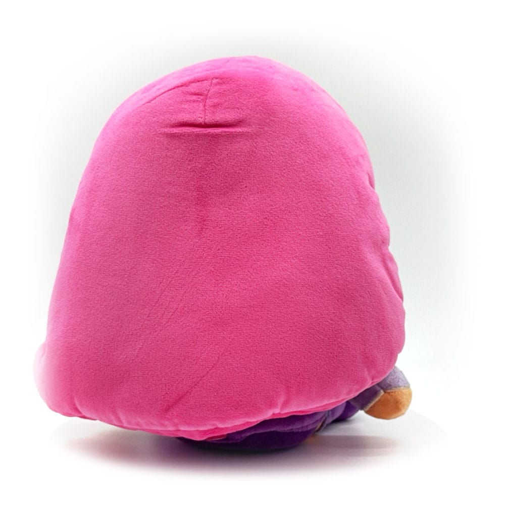 Flying back in because she had so much fun the last time, Starfire is back for her plush debut! Sitting at 9 inches tall and dressed in her iconic purple top and skirt as pale body armor wraps around her neck and waist along with her hands and feet, a thin smile spreads across her face under bright green eyes as long pink hair falls down her back. This plush is packed to the seams with 100% PP cotton and is made of the softest minky with accents of felt and shiny brushed material, perfect for cuddling or fighting crime with!