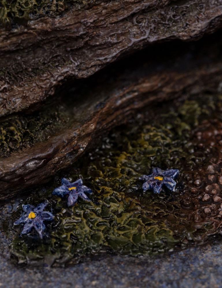 The three different sized circular bases across our 1:6 scale Dark Crystal range represent the Three Suns in the skies of Thra; the dying sun, rose sun, and great sun. Familiar iconography from the floor of the Crystal Chamber are featured around the outside. Spy the symbols of the urSkeks, which have since been appropriated as signs of discord and Skeksis aggression.