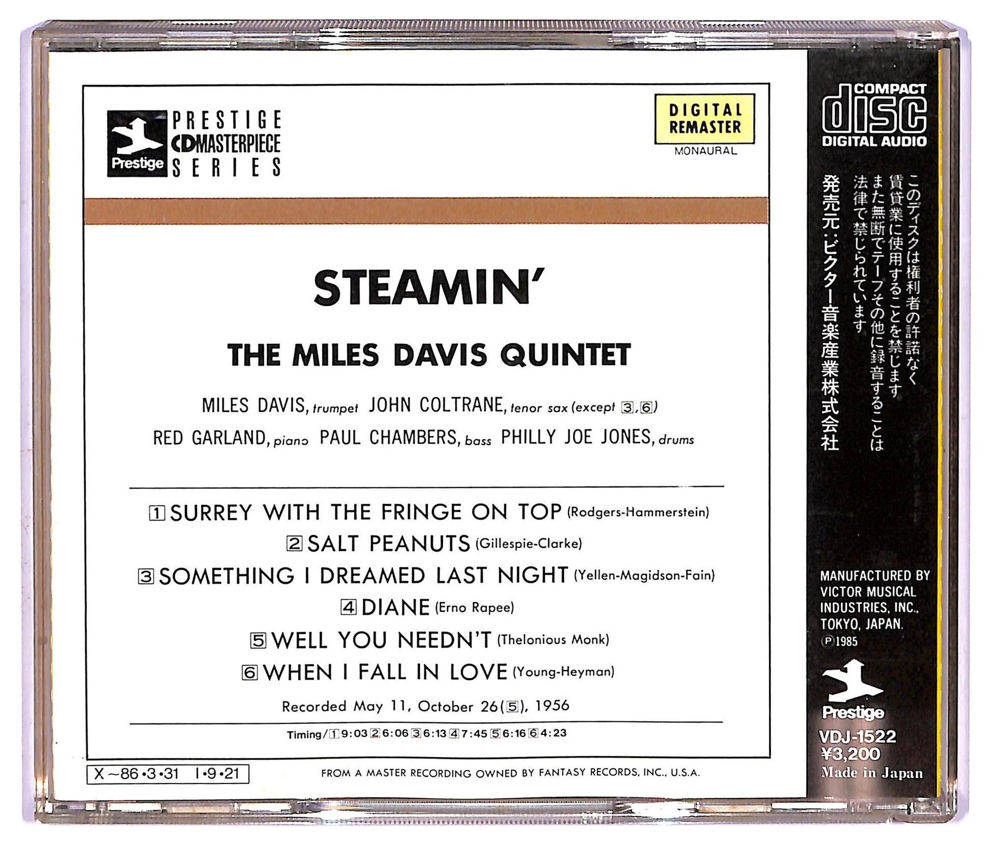EBOND The Miles Davis Quintet - Steamin' With The Miles Davis Quintet ALBUM JEWEL CASE CD CD067242