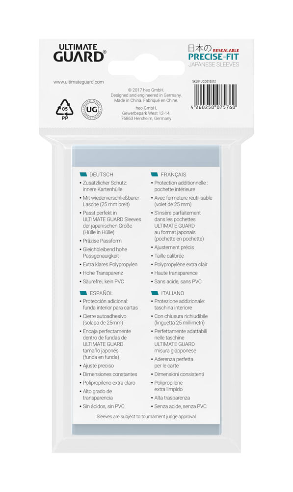 Ultimate Guard Precise-Fit Sleeves Japanese Size (100) - Resealable P061763