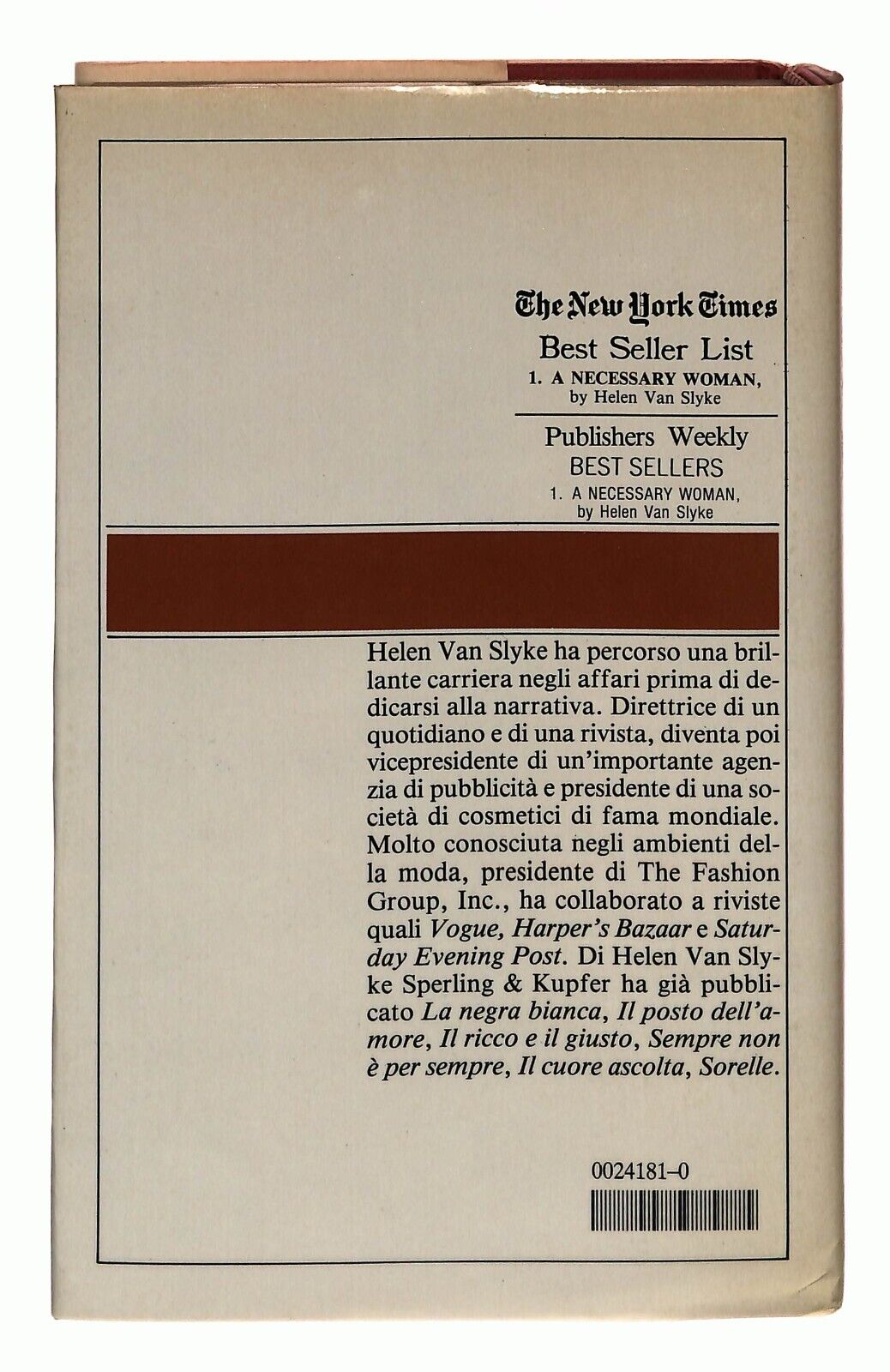 EBOND Una Donna Necessaria Helen Van Slyke Sperling & Kupfer 1984 Libro LI031409