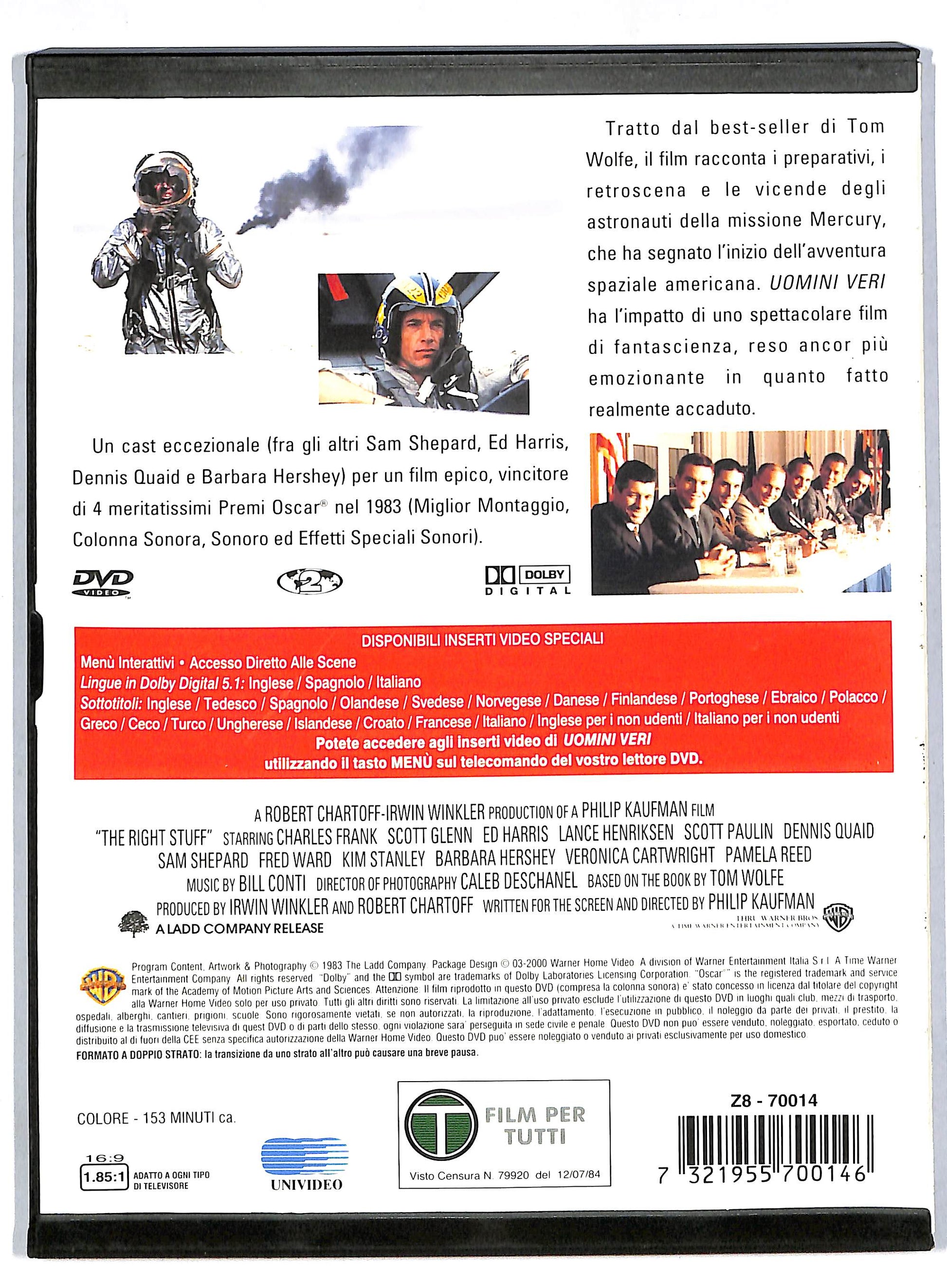 Attori: Scott Glenn, Sam Shepard, Ed Harris, Dennis Quaid, Fred Ward, Barbara Hershey, Kim Stanley, Veronica Cartwright, Pamela Reed, Scott Paulin, Charles Frank, Lance Henriksen, Donald Moffat, Levon Helm, Mary Jo Deschanel, Scott Wilson, John P. Ryan, Harry Shearer, Jeff Goldblum, Royal Dano, John Dehner