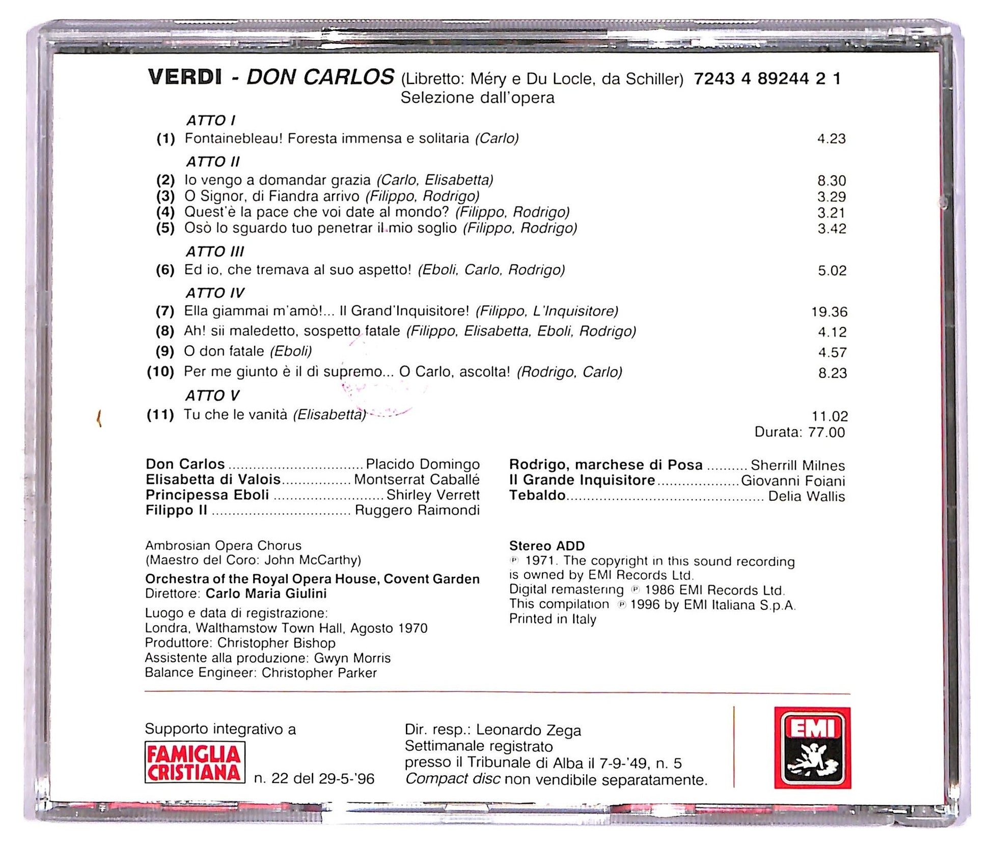 Verdi* - Domingo*, Caballe*, Raimondi*, Verrett*, Milnes*, Ambrosian Opera Chorus*, Orchestra Della Royal Opera House, Covent Garden*, Carlo Maria Giulini - Don Carlos (Le Pagine Piu Belle)