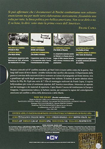 Da poco coinvolti nel secondo conflitto mondiale, gli Stati Uniti si resero subito conto che la guerra - ben lungi dall'essere di breve durata - avrebbe richiesto duri sacrifici alla nazione. Il Dipartimento della guerra si convinse della necessita di dover sostenere un'azione di propaganda sul fronte interno, tesa a giustificare agli occhi degli americani l'impegno loro richiesto. Il risultato di questo ulteriore sforzo bellico fu 'Why we fight', una serie di 7 film di montaggio realizzati da Frank Capra, il regista hollywoodiano piu vicino al sentimento popolare dell'America roosveltiana. Attraverso un sapiente uso del montaggio e dei materiali di repertorio, Capra illustro l'ascesa del totalitarismo in Europa e Giappone, l'espansionismo tedesco, la barbarie nazista, per sostenere le ragioni del coinvolgimento americano nel conflitto a difesa della democrazia e della liberta. Questi i titoli: 'Preludio alla guerra' + 'L'attacco nazista' + 'Dividi e conquista' + 'La battaglia d'Inghilterra' + 'La battaglia di Russia' + ''La battaglia della Cina' + 'La guerra arriva in America'. 'Preludio alla guerra': Nel primo film della serie vengono illustrate le caratteristiche dei due mondi contrapposti, quello degli schiavi e quello degli uomini liberi; quello della dittatura e quello della democrazia, nonche la nascita del militarismo totalitario: dalla conquista della Manciuria da parte del Giappone alla conquista mussoliniana dell'Etiopia. Mentre l'America rimane neutrale. Premio Oscar nel 1942 per il miglior documentario...; 'L'attacco nazista': Hitler al comando. L'imposizione della dittatura nazista in Germania. La politica dello 'spazio vitale'. Passo d'oca in Renania e in Austria. Minacce di guerra e invasione della Cecoslovacchia. Trattati, patti e vane richieste di pace. Primo settembre 1939, Hitler invade la Polonia. S'apre il sipario sulla tragedia del secolo: la seconda guerra mondiale...; 'Dividi e conquista': La macchina da guerra tedesca continua la sua marcia trionfale in Europa. La Danimarca e la Norvegia capitolano. La linea Maginot e aggirata e la Francia e invasa dalle truppe di Hitler: e la fine della terza Repubblica francese. La flotta Britannica e sconfitta a Dunkerque. Le truppe tedesche sembrano inarrestabili...; 'La battaglia d'Inghilterra': Dopo il crollo francese Hitler spera in un accordo con l'Inghilterra, ma Churchill non ha alcuna intenzione di arrendersi. I tedeschi cominciano i preparativi per l'invasione dell'isola, ma per fare cio la Germania deve garantirsi il dominio dei cieli. Comincia cosi la battaglia d'Inghilterra, una violenta offensiva fino al bombardamento di Londra. La RAF (Royal Air Force) oppone una tenace e vittoriosa resistenza...; 'La battaglia di Russia': Storia della Russia, la gente, le risorse, le guerre. Dopo avere invaso i Balcani, le truppe di Hitler il 22 giugno del 1942 danno inizio alla campagna di Russia, schierando l'esercito su un fronte di oltre 1600 Km. I sovietici attuano allora la tattica della terra bruciata, indietreggiando verso l'interno, mentre Stalin si appella al nazionalismo russo per spingere la popolazione civile alla resistenza, cosi accade a Mosca e Leningrado. A Stalingrado i nazisti compiono una tremenda carneficina. Il 19 novembre 1942 e la volta della prima vittoriosa controffensiva che, proseguita tenacemente in dicembre, provochera un ripiegamento della Wermacht. Unico lungometraggio della serie, ottenne una candidatura al premio Oscar nel 1943...; 'La battaglia della Cina': Uno sguardo alla Cina, il territorio, il popolo, le risorse. Il piano giapponese di espandersi in Asia sfruttando il potenziale umano cinese, porta allo scoppio della guerra cino-giapponese, strategicamente risolto nel 1941 con l'intervento americano...; 'La guerra arriva in America': Con chi, che cosa, dove, perche gli Stati Uniti d'America sono diventati la piu antica e la piu grande repubblica democratica che continua ad essere governata grazie ai principi scritti nella sua prima costituzione. Inoltre il film tratta della profondita e della varieta di emozioni con cui gli Americani hanno reagito ai traumatici eventi susseguitisi in Europa e in Asia. Si mostra come le posizioni siano passate da una totale indifferenza a una completa partecipazione non appena ci si e resi conto che la perdita della liberta delle altre nazioni minacciava da vicino anche la liberta degli Stati Uniti d'America... VD