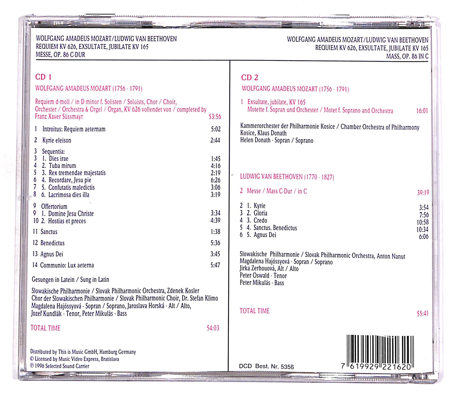 Wolfgang Amadeus Mozart, Ludwig van Beethoven - Requiem KV 626, Exsultate, Jubilate KV 165, Messe / Mass, Op. 86 C-Dur / In C